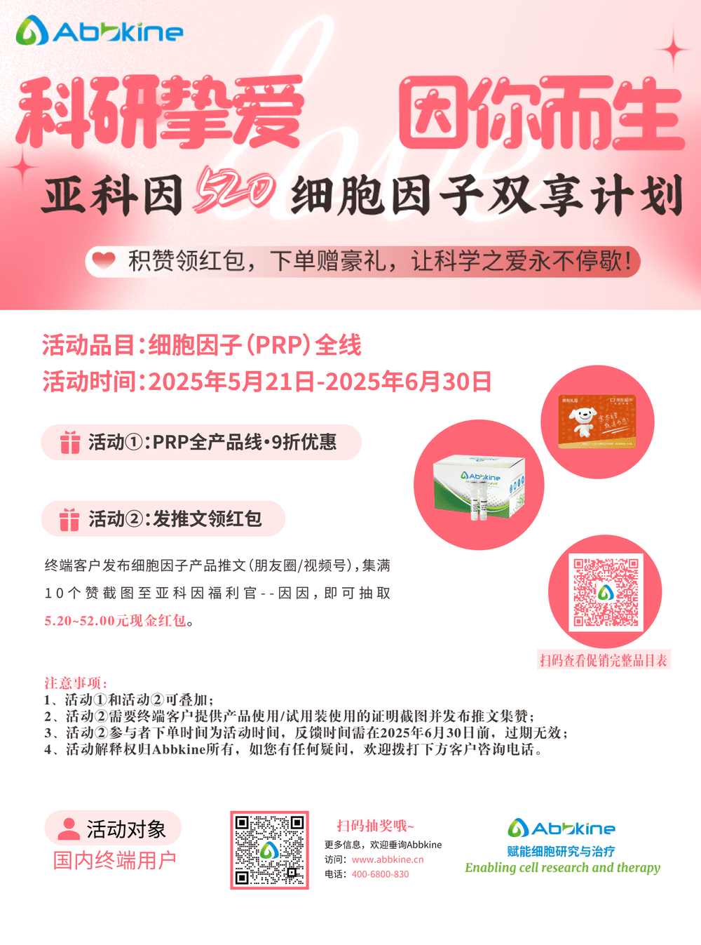 一.科研有「礼」,「蛋白」示爱!Abbkine(亚科因)高纯度·高活性·低内毒素,科研必备细胞因子全线9折,另有现金红包拿到手软!