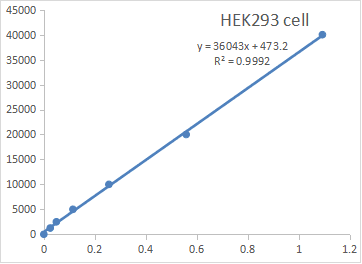 Figure 1. 96孔板分析的CCK-8试剂盒检测细胞活性,数据和曲线仅供参考,实验者需根据自己的实验建立标准曲线。