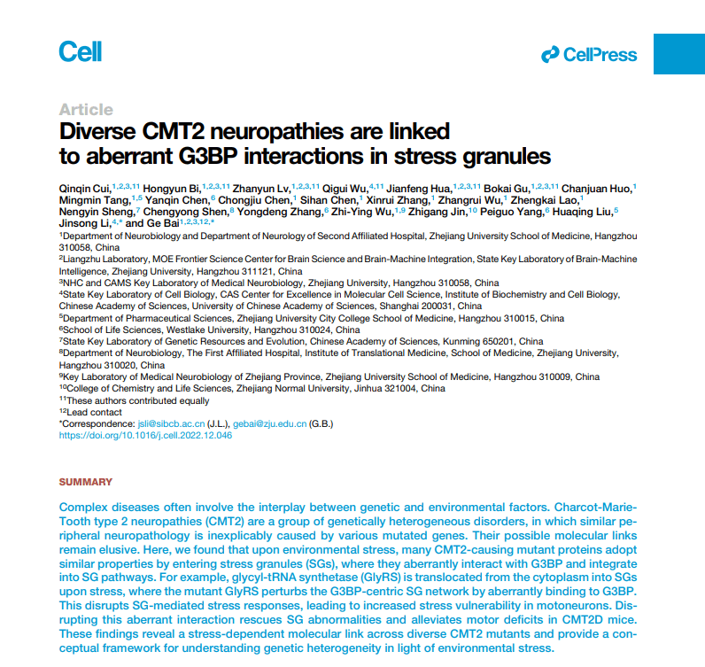 (多种CMT2神经病变与应激颗粒中异常的G3BP相互作用有关)