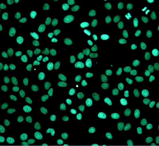 图4. 一步法TUNEL细胞凋亡检测试剂盒(绿色荧光)检测凋亡阳性诱导的Hela细胞。