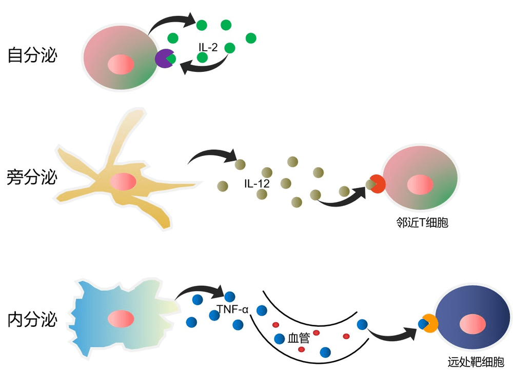 ⑸细胞因子在局部产生,且在局部发挥作用。