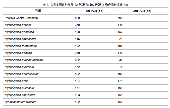 附:常见支原体种类及 1st PCR 和 2nd PCR 扩增产物参考长度