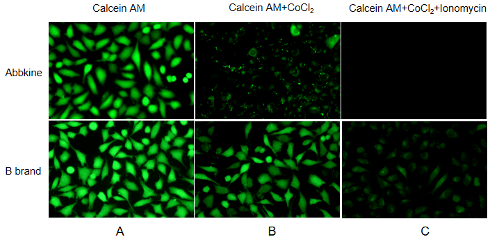 2、准确性高:CoCl2和离子霉素淬灭率高(B和C)。