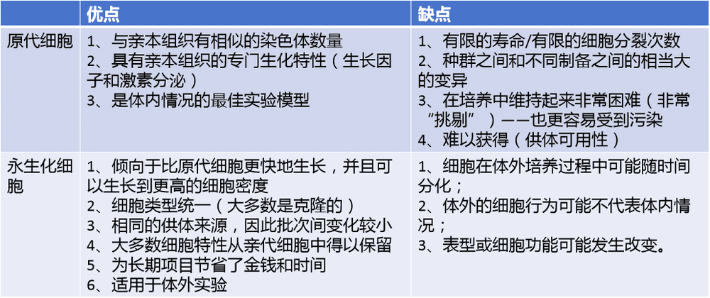永生化细胞与原代细胞对比