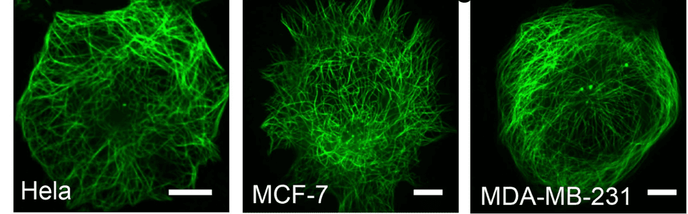 图3. Abbkine TraKine™ Pro 活细胞微管染色试剂盒(绿色荧光)在不同细胞上验证的成像效果