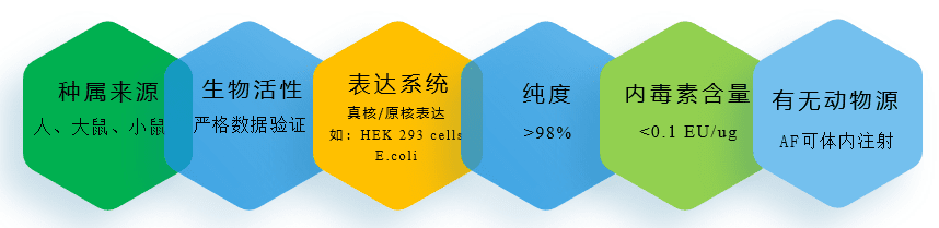 功能:作为信号分子与相应受体结合,在细胞间传递信息调节细胞的免疫应答、生长、增殖、分化、组织修复、炎症反应、肿瘤发生等过程。