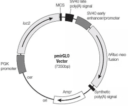 或者两种荧光素酶位于同一个载体上。这样偏差更小,毕竟转染一个质粒比转染两个质粒要容易,在这方面,根据检索到的资料显示,现在的这类质粒比较有名的是Promega公司的pmirGLO质粒。