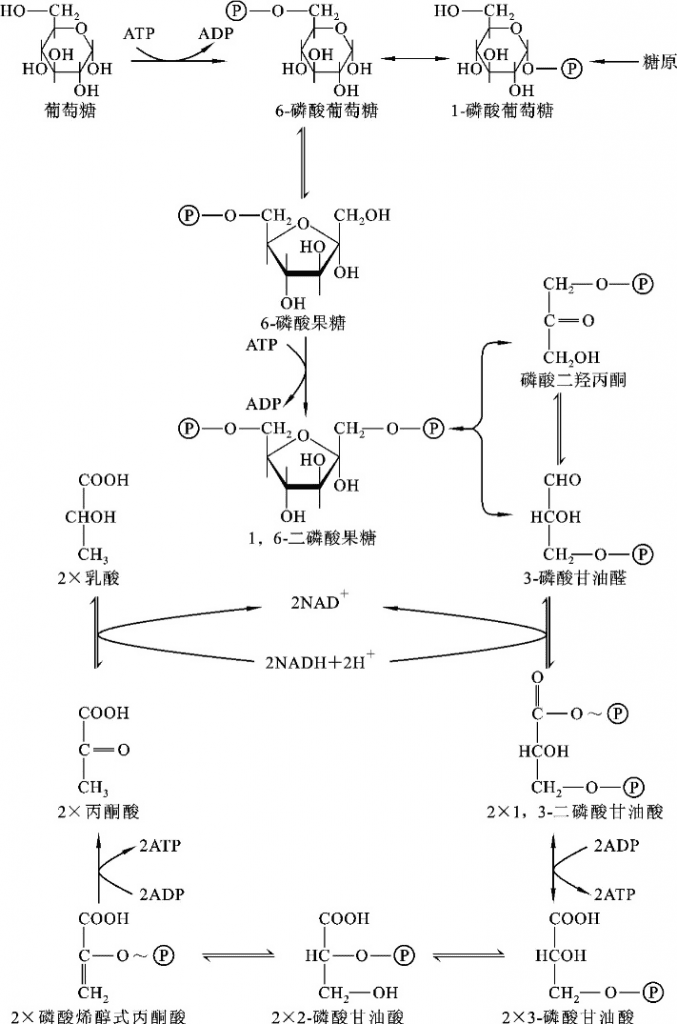 糖代谢可分为分解代谢和合成代谢两个方面,生物体内的糖代谢基本过程相类似。糖的分解代谢是指糖类物质主要为葡萄糖分解成小分子物质的过程。在此过程中释放出大量的能量,供机体生命活动之用。同时在分解过程中形成的某些中间产物,又可作为合成脂类、蛋白质、核酸等生物大分子物质的原料(作为碳架)。
