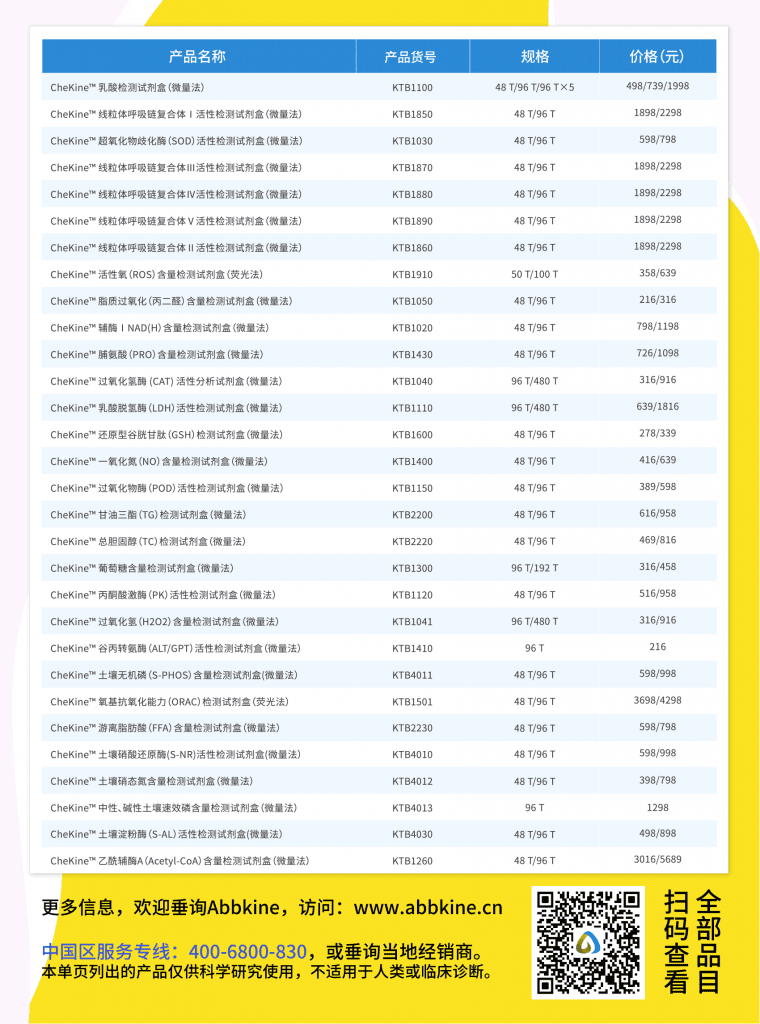 生化系列试剂盒种类齐全,灵敏度高,检测样本范围广,家人们热切期待,促销活动火热进行中,更多信息,欢迎垂询Abbkine或当地代理商;咨询电话:400-6800-830。